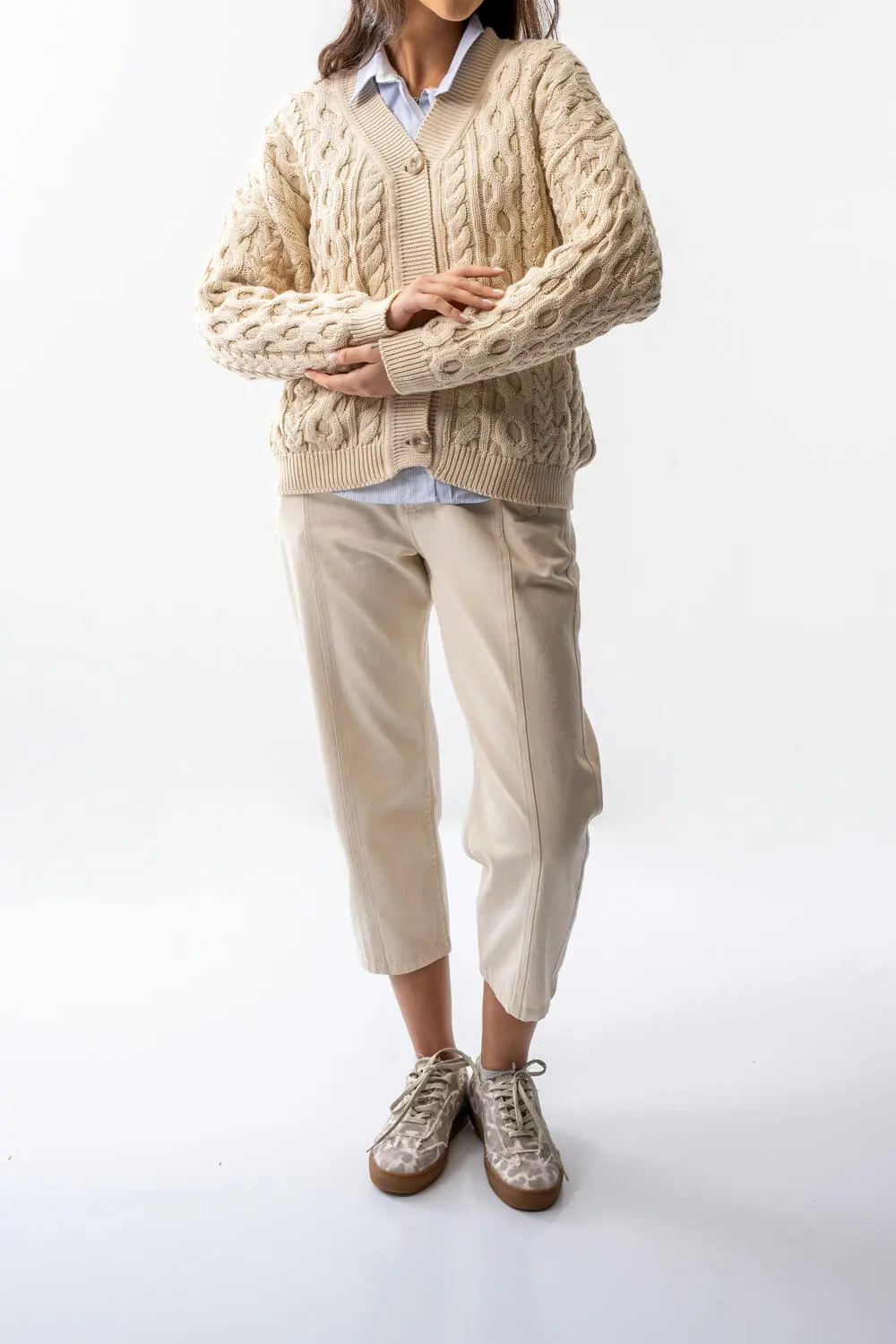 این ژاکت بافت برجسته از الیاف پنبه طبیعی ساخته شده و بهدلیل بافت درشت و نرم خود، گرما و راحتی ملایمی را در روزهای سرد ایجاد میکند.
