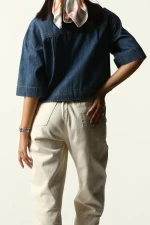 شومیز آستین کوتاه کراپ یک آیتم پر کاربرد و راحت مناسب فصل بهارو تابستان میباشد که در دو رنگ آبی و دودی قابل خرید است