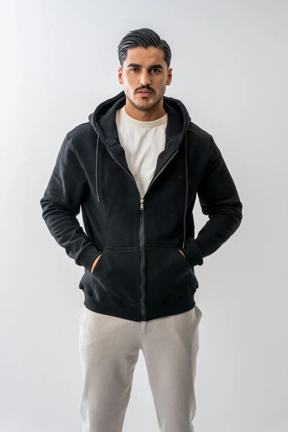 پارچه دورس استفادهشده، حس گرما و نرمی مطلوبی دارد و برای فصلهای پاییز و زمستان انتخابی کاربردی محسوب میشود. زیپ سرتاسری، کلاه با بند قابل تنظیم و جیبهای جانبی، این سویشرت را به آیتمی راحت و قابلاستفاده در موقعیتهای مختلف روزمره تبدیل کرده است.