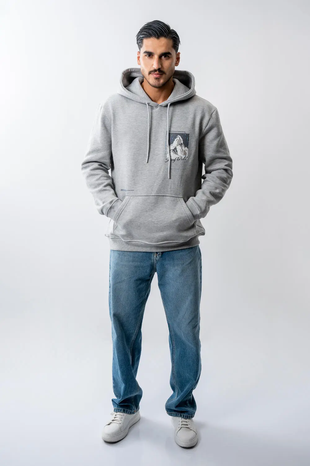 پارچه استفادهشده حس نرمی و گرمای متعادلی دارد و برای فصلهای خنک سال کاربردی است. کلاه با بند قابل تنظیم، جیب کانگورویی در جلو و چاپ ظریف روی سینه، ترکیبی ساده اما مدرن به هودی دادهاند که بهراحتی با شلوار جین یا اسلش ست میشود.